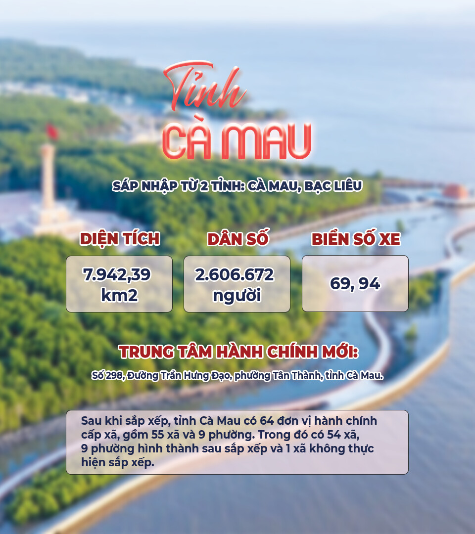 | 63 | Phường Hòa Thành | Xã Hòa Tân, xã Hòa Thành, phần còn lại Phường 7 (TP Cà Mau), Phường 6, xã Định Bình, xã Tắc Vân |